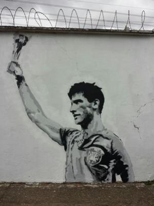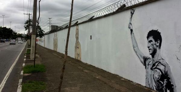 Paulo Constantino é o autor responsável pela obra. Ele vem se especializando em pinturas de murais. Seu trabalho já é conhecido no meio do futebol. Foi Constantino que reproduziu os ídolos da história do Santos no muro do CT Rei Pelé, em homenagem ao centenário santista.