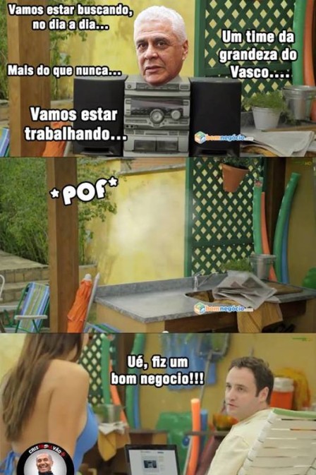 “...Vamos estar buscando no dia a dia...”, “Mais do que nunca...”, “Vamos estar trabalhando...” e “Um time da grandeza do Vasco...” foram as expressões de Dinamite usadas na piada feita pelo Facebook “Cristollvão Borges”, lembrando das frases recorrentes do presidente.