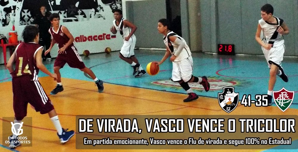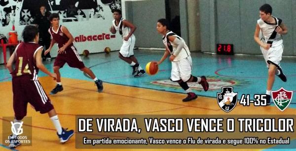 Uma partida muito emocionante agitou o final da tarde e o início da noite desta sexta-feira (28/03) no ginásio do Forninho, em São Januário, que recebeu um bom público. Vasco e Fluminense se enfrentaram pela categoria sub-14 pela segunda rodada do Campeonato Estadual e, apesar do nível técnico da partida ter deixado a desejar em boa parte dos quarenta minutos, o placar seguiu indefinido até os últimos segundos. O Vasco efetuou uma bela virada no placar após iniciar o último quarto perdendo por oito pontos de diferença. Placar final: 41 a 35.