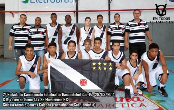 O Gigante da Colina segue 100% no Estadual da categoria, pois venceu o Pedra Branca na estreia fora de casa, no último sábado. Na próxima rodada, o Vasco tem uma verdadeira pedreira pela frente: visita o Tijuca, atual campeão da categoria e, com uma base campeã sub-13 de maneira invicta em 2013, é extremamente favorito. A partida será na próxima quarta-feira (02/04), às 18:30h, no ginásio do adversário. Ainda numa série de jogos complicados, no dia 16 de abril o Vasco vai à Gávea enfrentar o Flamengo. Com o Tijuca com extremo favoritismo, equipes como Vasco, Flamengo, Fluminense e Botafogo devem disputar para alcançar a outra vaga na final. O Vasco, único que realizou dois jogos até o momento, lidera a competição com 100% de aproveitamento. As outras duas partidas realizadas até o momento no Estadual sub-14 foram as seguintes: Tijuca 102 x 30 Municipal e Botafogo 46 x 48 Flamengo.