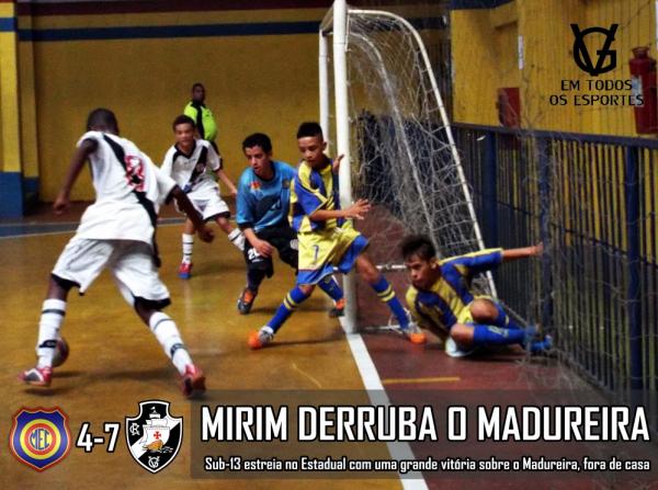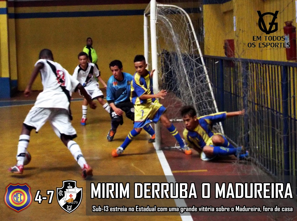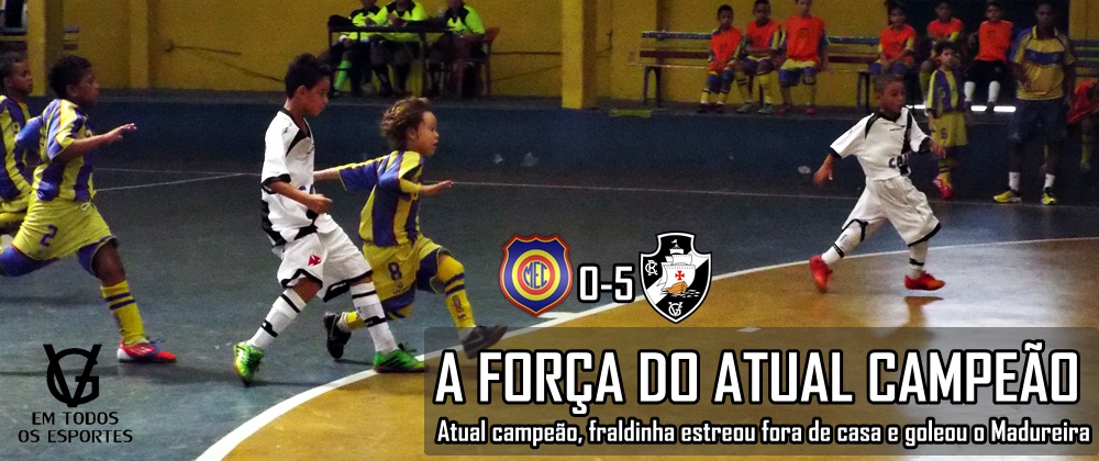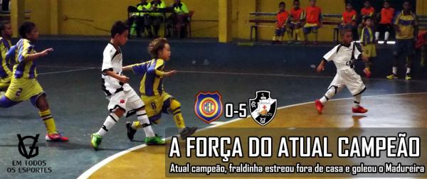 O Vasco tem uma grande equipe pré-mirim, mas jogando na quadra minúscula do Madureira, o time de São Januário sofreu e acabou sofrendo a derrota. O Gigante da Colina começou muito mal a partida, sofrendo de cara 3 a 0. Com algumas substituições e gols de Caio, Hugo e Juan “Batata”, o Vasco alcançou o empate ainda no primeiro tempo.