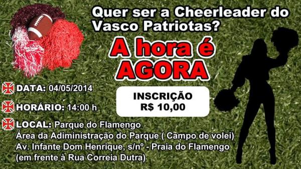 Finalmente realizaremos o teste seletivo para montar o time de cheerleaders que fará a animação dos jogos do Vasco da Gama Patriotas!