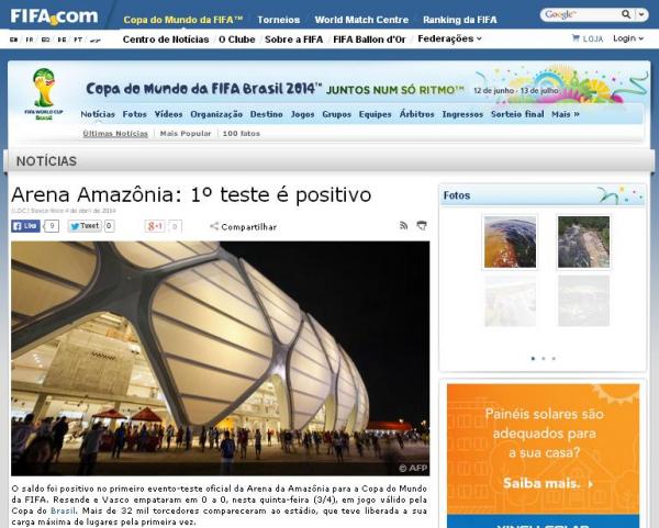 O saldo foi positivo no primeiro evento-teste oficial da Arena da Amazônia para a Copa do Mundo da FIFA. Resende e Vasco empataram em 0 a 0, nesta quinta-feira (3/4), em jogo válido pela Copa do Brasil. Mais de 32 mil torcedores compareceram ao estádio, que teve liberada a sua carga máxima de lugares pela primeira vez.