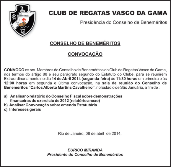 Conselho de Beneméritos se reunirá no dia 10/02 para debater balanço de 2012; veja convocação