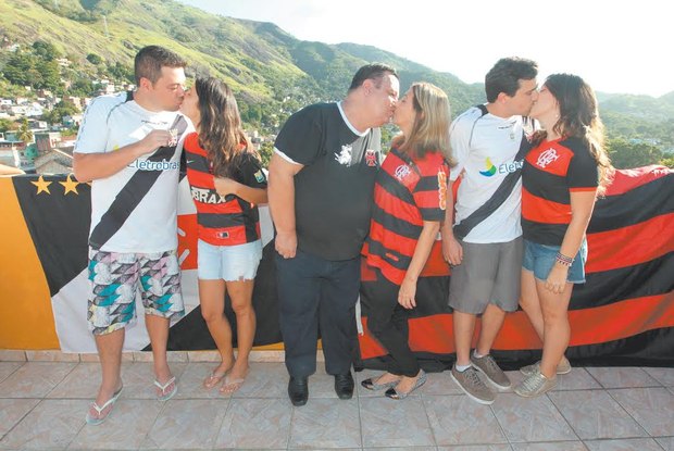 O vascaíno Rafael Fernandes, de 27 anos, vivia falando para a mãe que jamais teria uma namorada rubro-negra. Mas, há seis anos e meio, ele se encantou justamente pela flamenguista Juliana Monteiro e, além de aguentar as provocações da família, comprovou o que seus pais já sabiam: é possível haver amor no meio de tanta rivalidade. Neste domingo, no Dia do Beijo, eles estarão em lados opostos no último duelo da decisão do Campeonato Carioca, mas sem perder a esportiva nem a paixão um pelo outro.