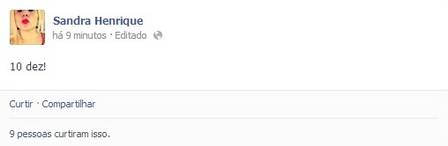 Desta vez, ela resolveu tirar onda com o título do Vasco antes de a decisão acabar. “10 dez”, escreveu Sandra em referência ao número da camisa de Douglas, autor do gol cruzmaltino. Fez até biquinho em uma foto. Mas, ela não contava com o gol de Marcio Araujo nos acréscimos.