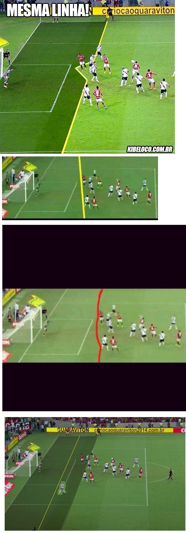 Mas, talvez por receio, o auxiliar fechou sua conta na rede social. Enquanto isso… internautas não cansaram de “citar” seu erro de forma irônica – criando linhas imaginárias e bem-humoradas para justificar a não-marcação do impedimento de Márcio Araújo. O volante do Flamengo fez o gol do título rubro-negro diante do Vasco em posição irregular aos 45 minutos do segundo tempo. Veja algumas:
