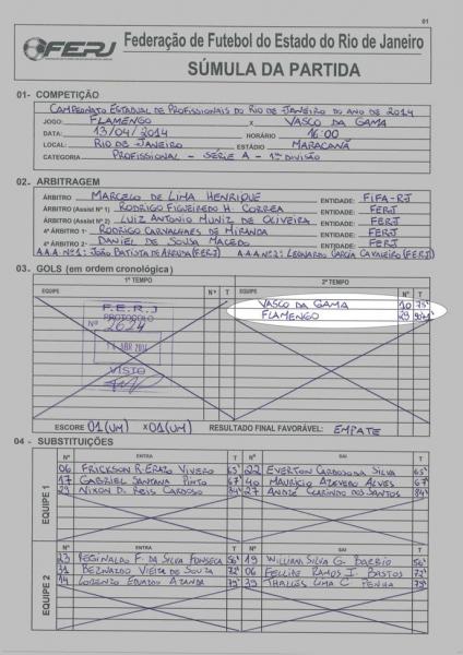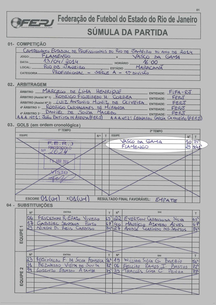 A súmula do jogo Flamengo 1 x 1 Vasco, que decidiu o Campeonato Estadual, credita o gol de empate rubro-negro ao jogador Nixon (nº 29), e não a Márcio Araújo. Nixon não estava em posição de impedimento no lance que decidiu o campeonato. A FFERJ informou que o documento será corrigido.