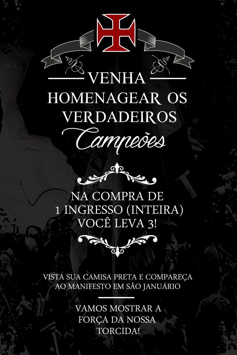 - O torcedor que comprar um ingresso (inteira), ganhará mais dois de presente para assistir a partida, podendo dessa forma, levar mais dois convidados.