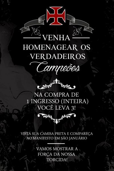 E para aumentar esse apoio e a presença maciça da torcida, o Vasco divullga para os seus sócios e torcedores uma promoção especial de ingressos para a partida.