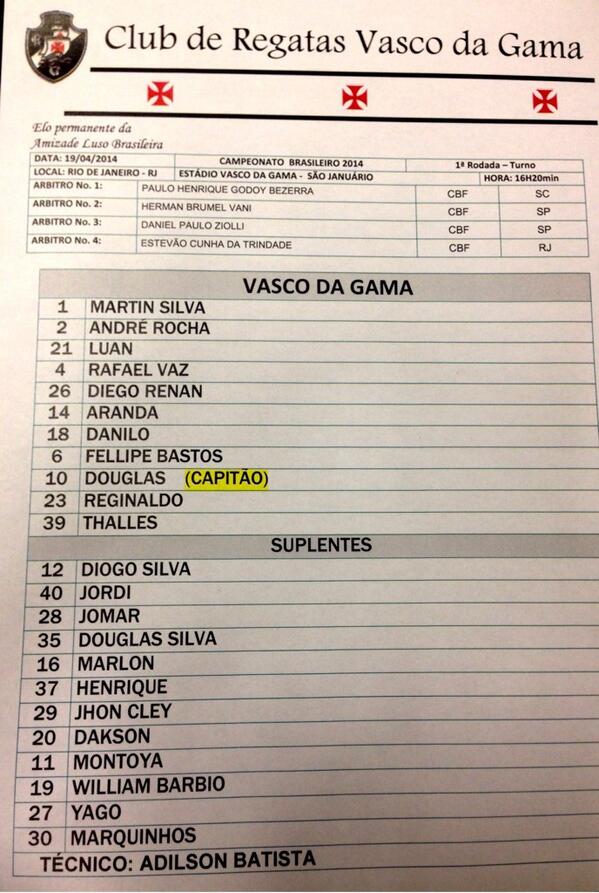 Confira escalação oficial do Vasco; Thalles e Reginaldo no ataque