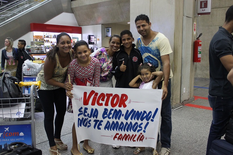 Com bandeiras, gritos, lágrimas, fotos, chocolate e muito carinho. Foi dessa maneira que os vascaínos da categoria sub-12 foram recebidos no Aeroporto Internacional do Rio de Janeiro, na noite deste domingo (20/4). Toda comissão técnica e os 12 jogadores que representaram o clube no Mundialito de Clubes de Futebol 7, competição que foi disputada de 12 a 19 de abril, no Algarve, Portugal, foram muito aplaudidos no desembarque.