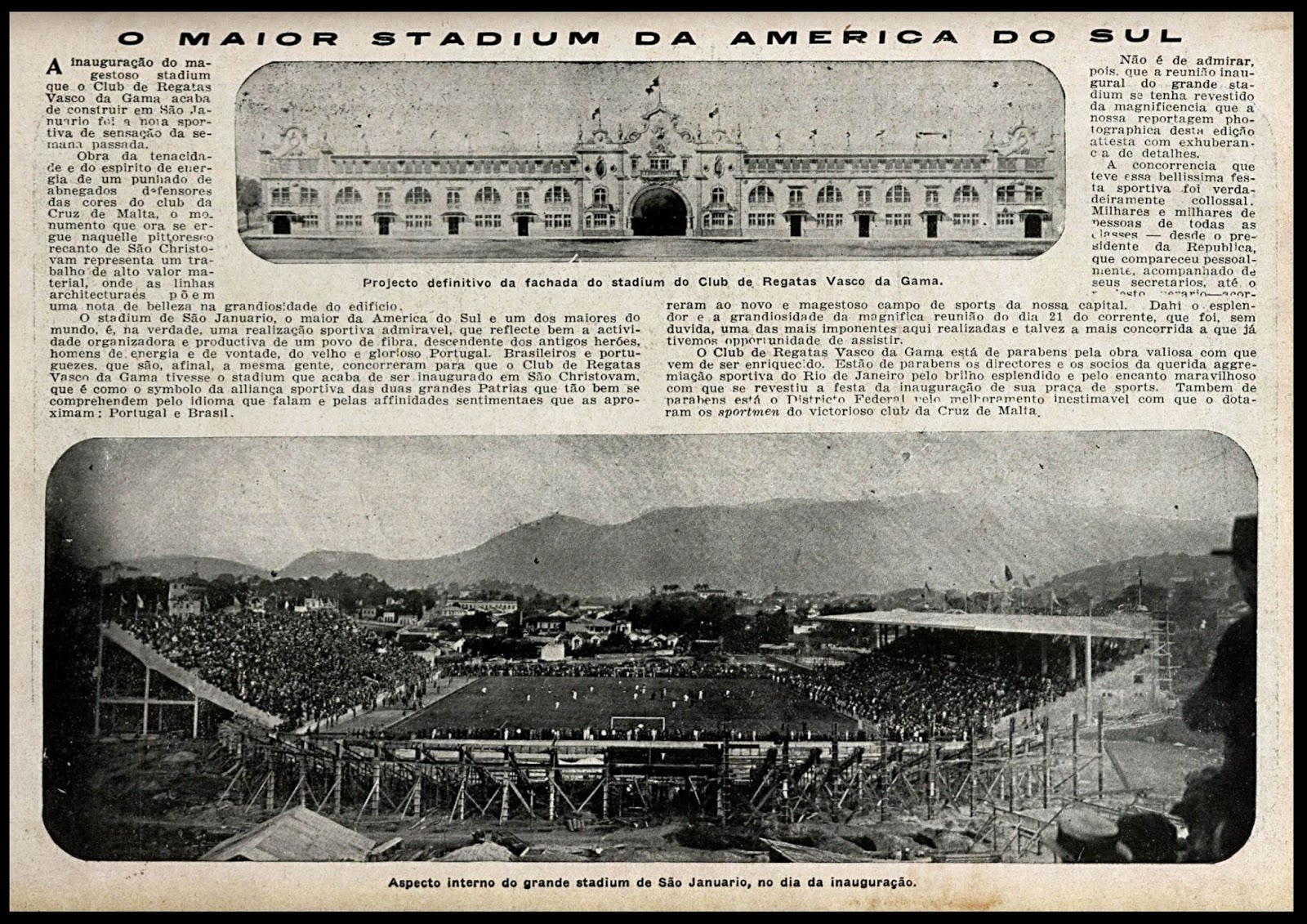 Hoje o majestoso estádio de São Januário completa. Originalmente chamado de Stadium Vasco da Gama, seu terreno localizado na antiga "Chacrinha do Imperador" foi adquirido em 1925, e o financiamento para a sua construção se deu através da magnifica campanha financeira realizada entre os sócios do clube, através de debêntures lançadas ao mercado para pagamento futuro.