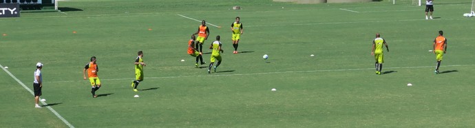 Adilson iniciou o treino com um trabalho em campo de dois toques em campo reduzido. Depois, o treinador comandou uma atividade mais concentrada no centro do gramado. Essa parte do trabalho contou até com dois bandeirinhas improvisados. Nas laterais do campo, os auxiliares Gustavo Nicoline e Jorge Luiz apontavam impedimentos e paravam as jogadas quando necessário. O treinador já havia utilizado a mesma prática em outros treinamentos.