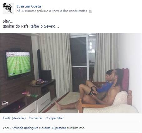 Já em casa após receber alta do hospital, onde ficou internado durante 6 dias devido a um problema no coração, o atacante vascaíno Everton Costa postou no Facebook uma foto em momento descontraído, jogando videogame.
