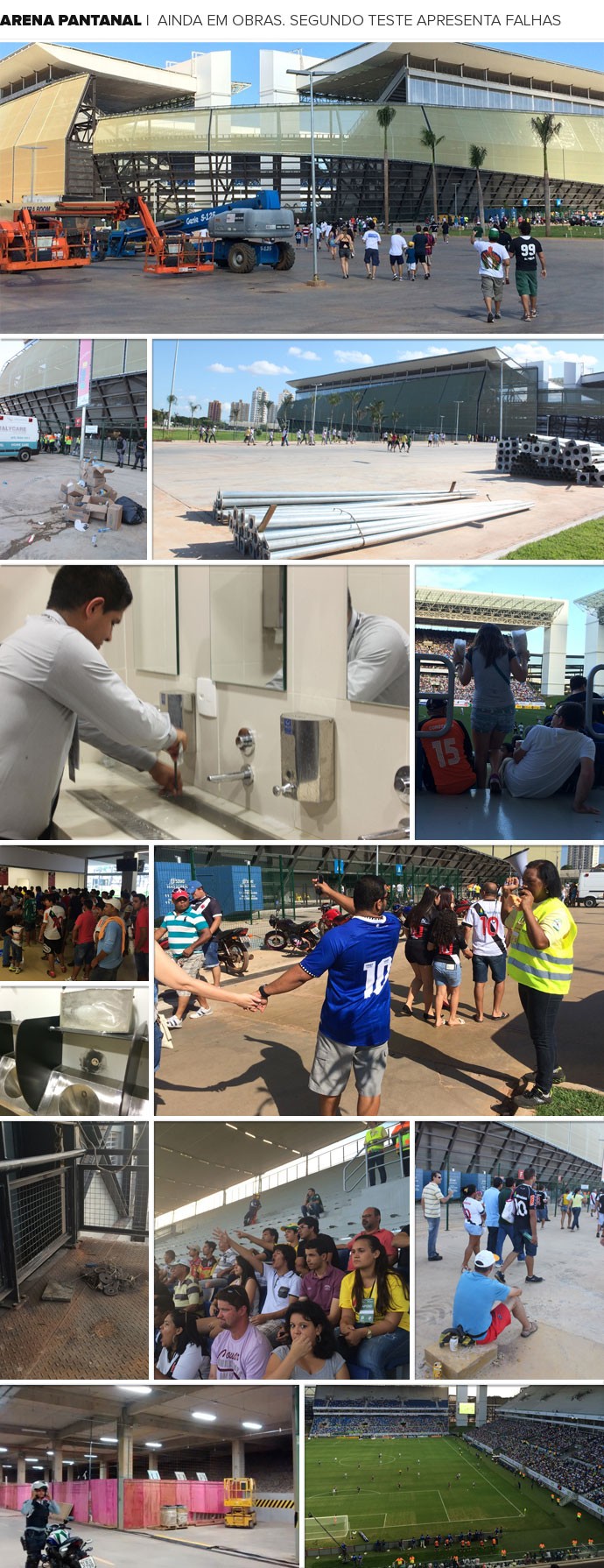 O principal problema da Arena Pantanal está explícito: trata-se de um estádio ainda em obras. A estrutura até que suportou bem seu segundo evento-teste, neste sábado, com partida entre Luverdense e Vasco, pela Série B do Campeonato Brasileiro. A entrada, os serviços - atendimento nos bares e orientação aos espectadores - e a segurança foram itens elogiados. Porém, partes inacabadas, máquinas e entulhos de construção dentro e fora do estádio e falhas nos banheiros ainda incomodaram muitos dos 17.808 torcedores presentes.