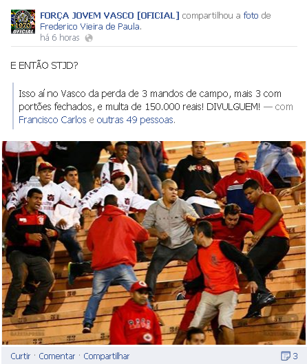 Fonte: Facebook oficial da Força Jovem Vasco