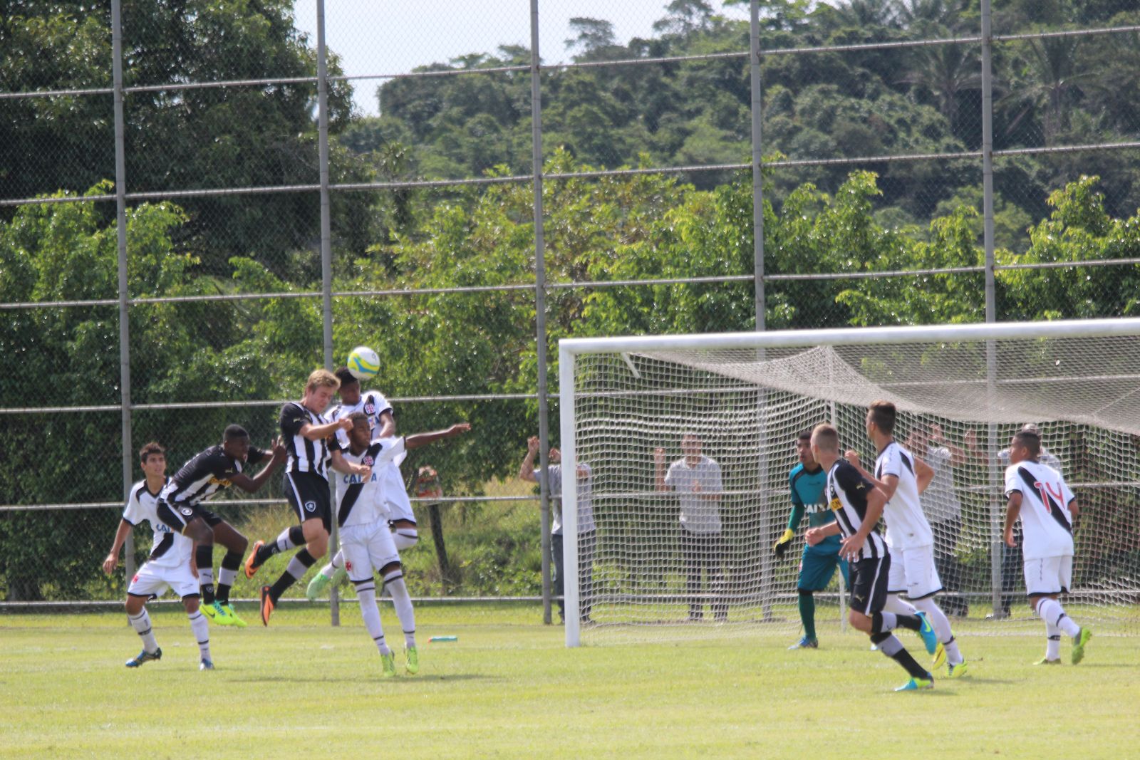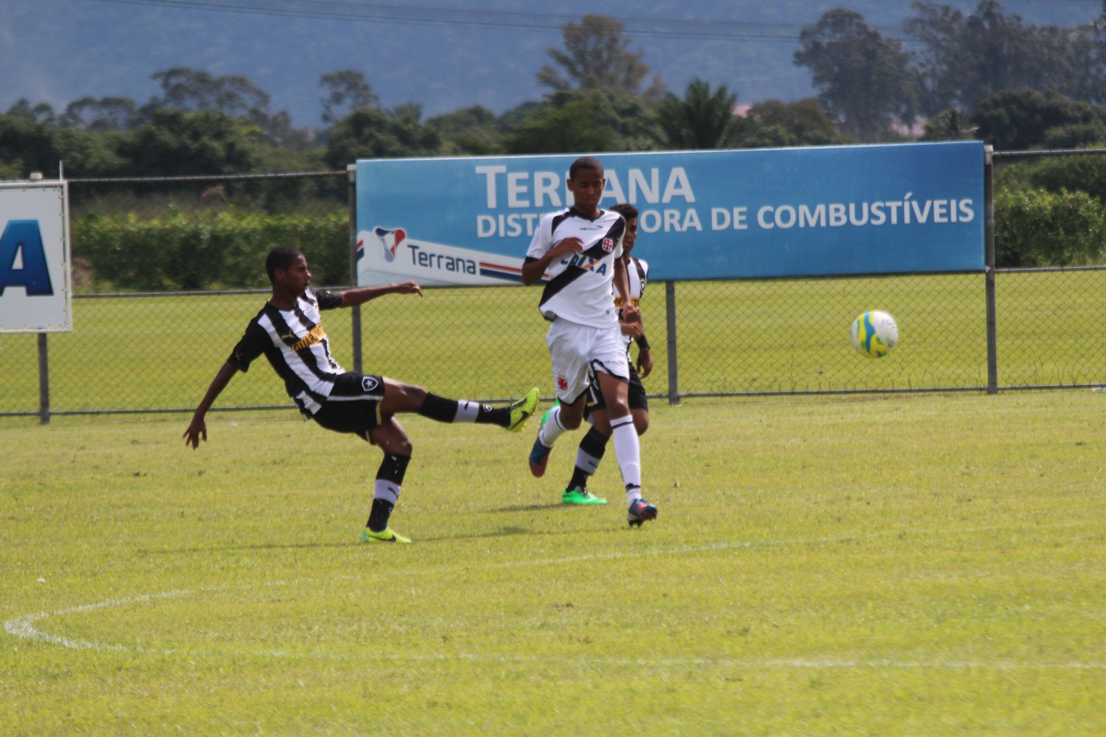 O lance mais perigoso do primeiro tempo foi criado pelo Vasco. Bruno Cosendey fez excelente jogada aos 34 minutos. O camisa 10 pedalou, fintou e cruzou para Caio Monteiro. A bola quicou e dificultou a vida do camisa 9, que mesmo sozinho finalizou por cima da trave. O artilheiro do sub-17 voltou a ser acionado aos 38 minutos, segundos após Yuri fazer outro milagre no campo de defesa. Caio roubou a bola do zagueiro botafoguense, invadiu a área e chutou forte. A bola foi novamente defendida pelo guarda metas do Botafogo.