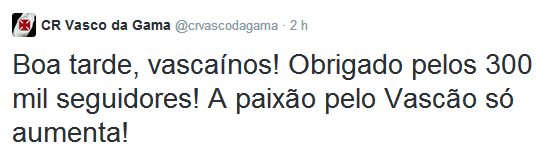 Twitter oficial do Vasco celebra marca de 300 mil seguidores