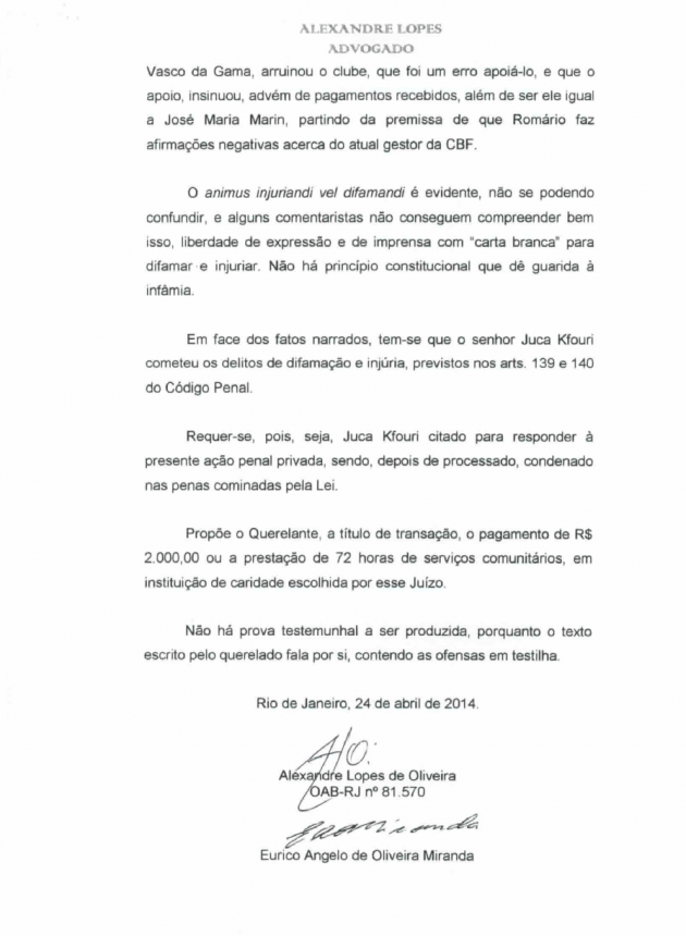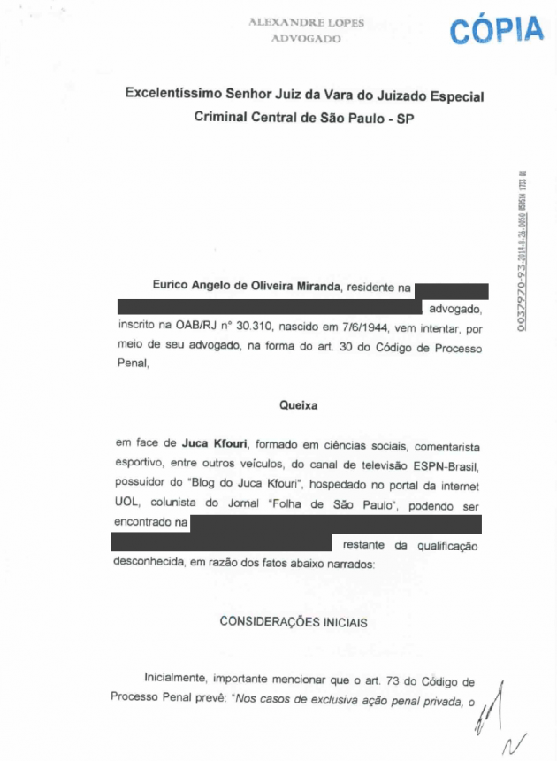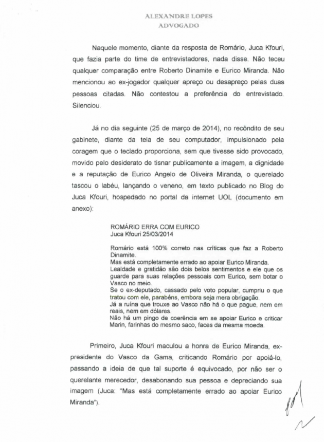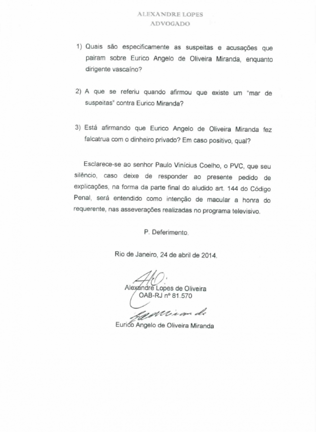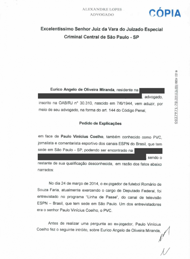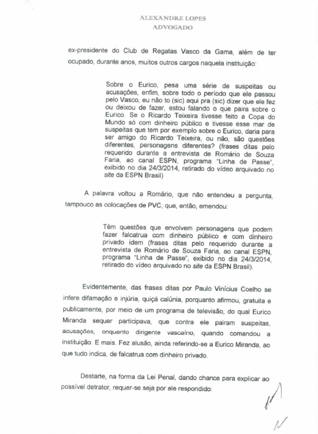 Eurico Miranda ingressa com ação na Justiça contra jornalistas