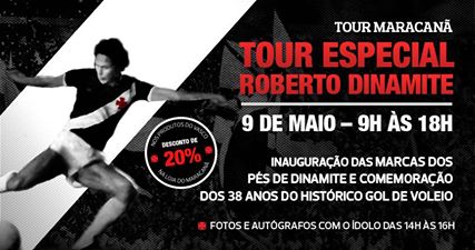 Faça o Tour do Maracanã nessa sexta-feira (09/05) com a presença do convidado especial Roberto Dinamite e relembre seu memorável gol de voleio contra o Botafogo, pela Taça Guanabara de 1976, que foi considerado um dos mais bonitos da história do Maraca.
