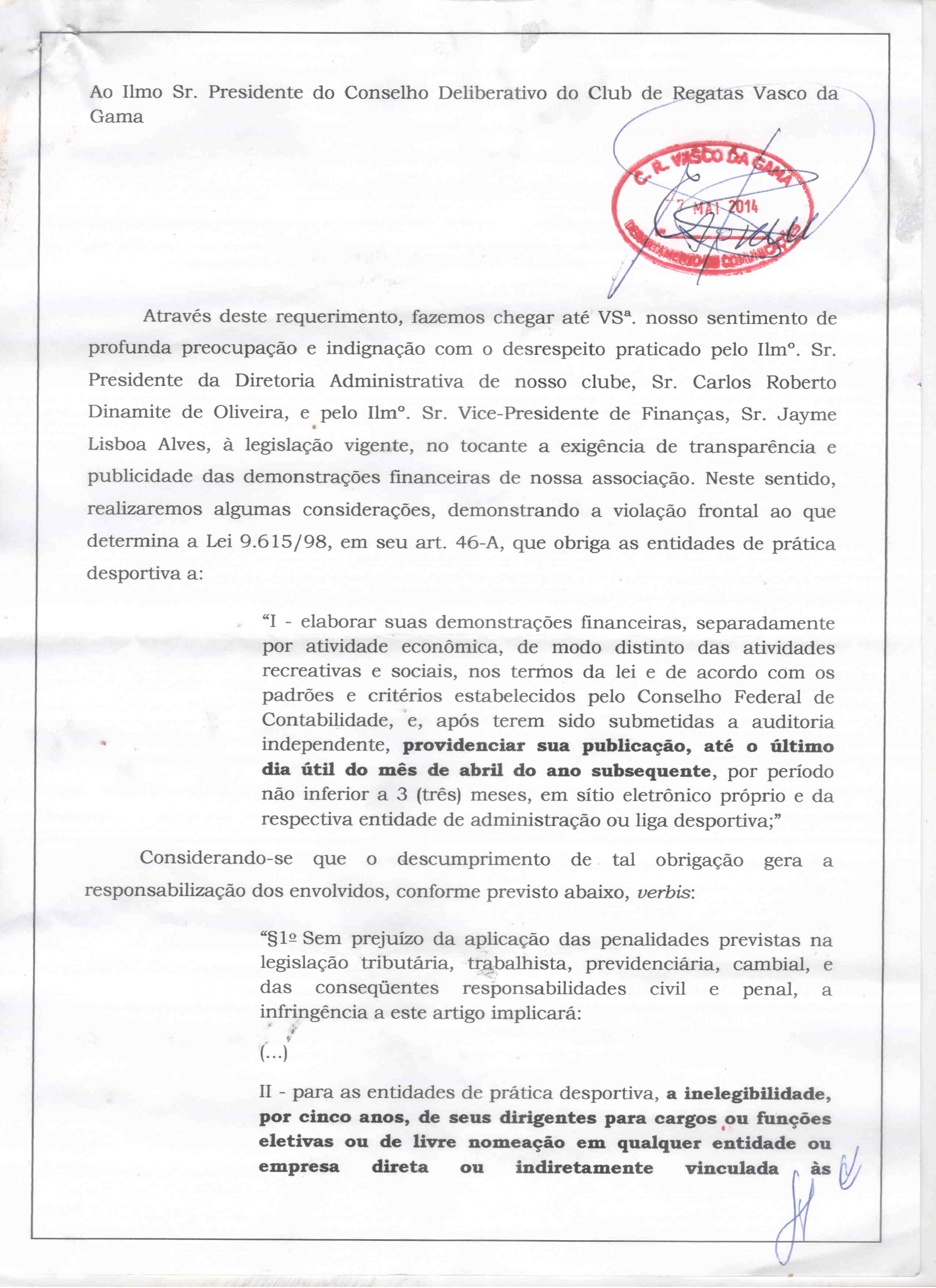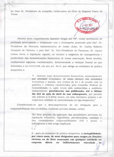 Veja o requerimento em que Leonardo Gonçalves e Eduardo Machado pedem reunião do CD para afastar Dinamite da presidência