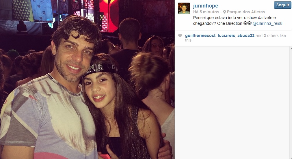 Em rede social, Juninho posta foto com a filha no show da banda One Direction