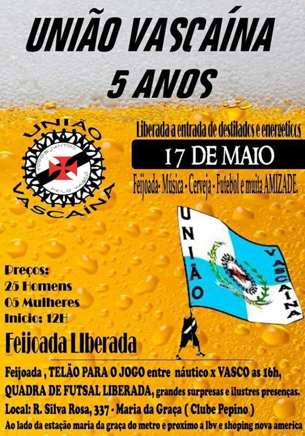 União Vascaína convida para sua festa de aniversário de 5 anos, que será no sábado