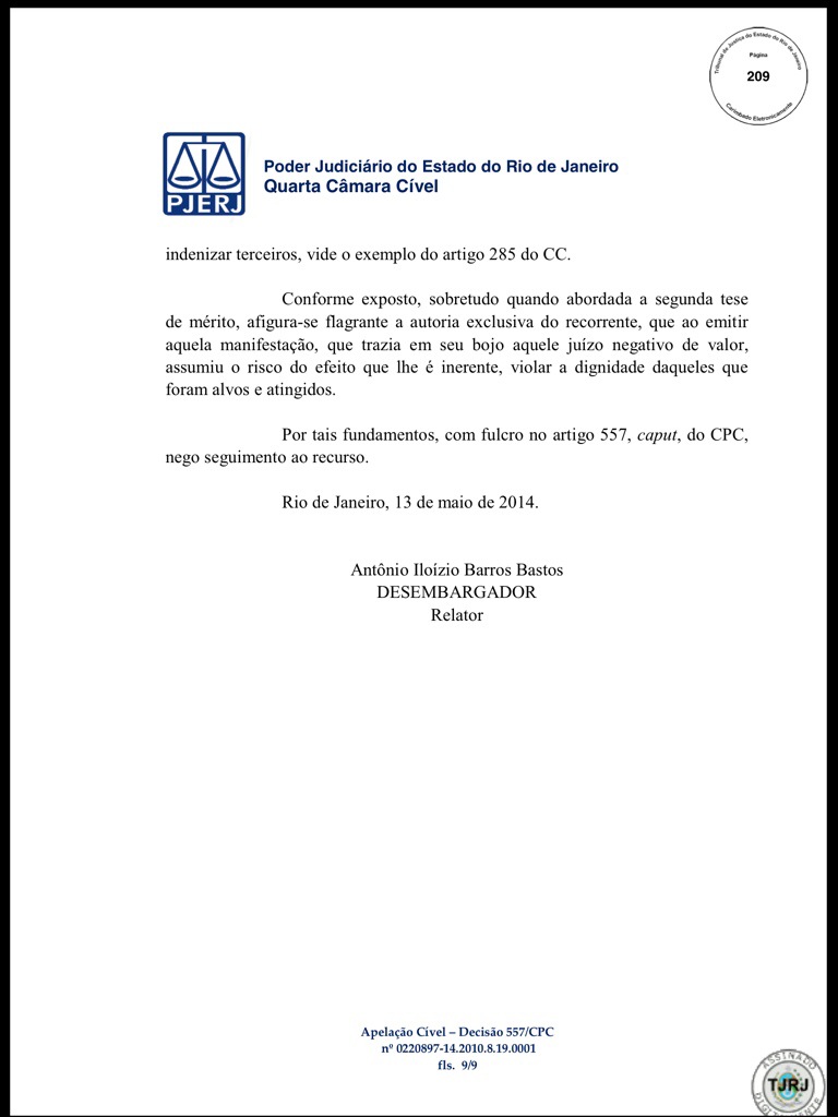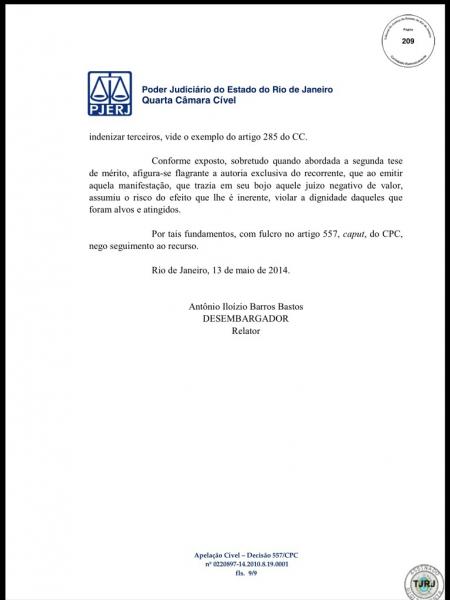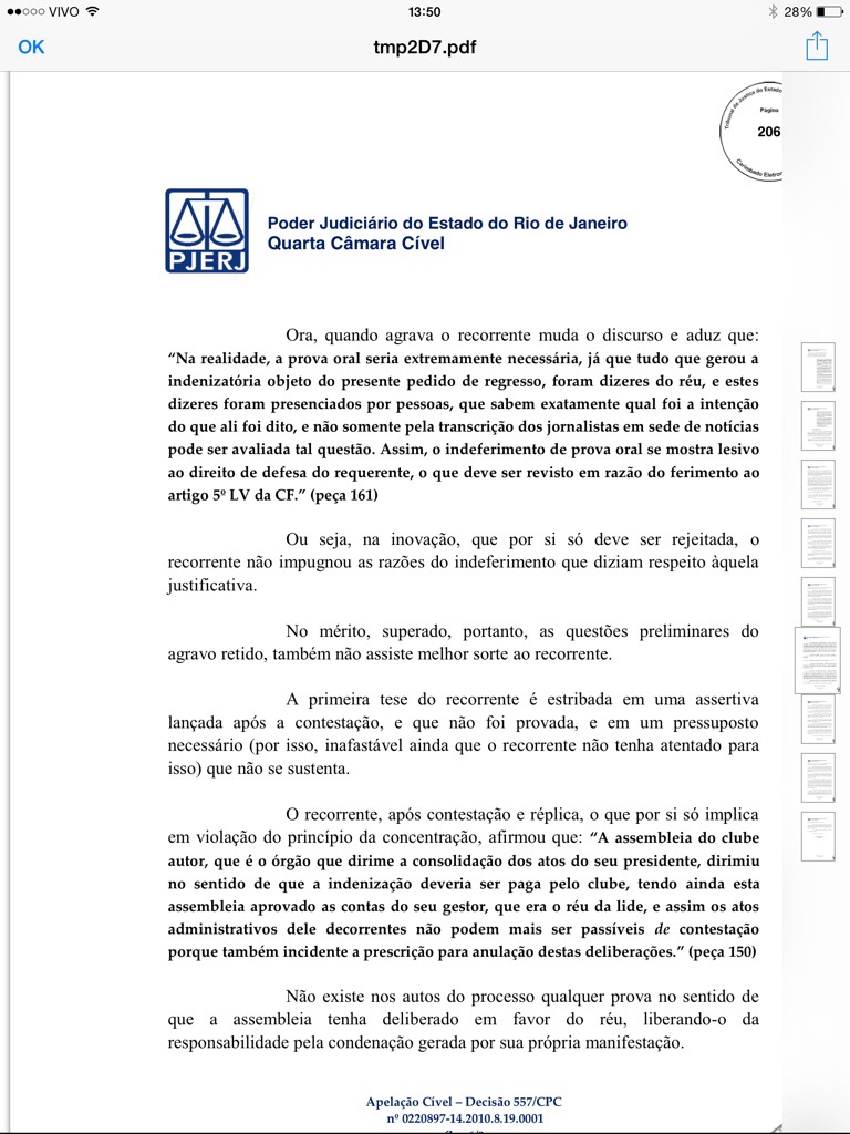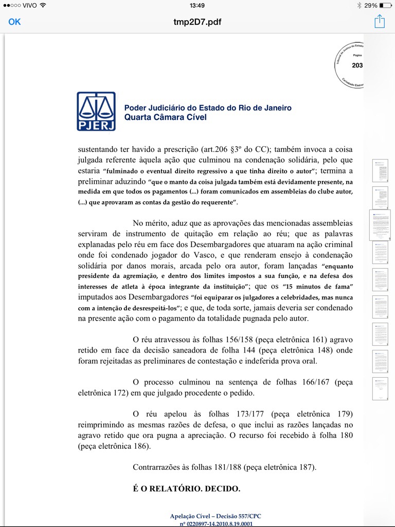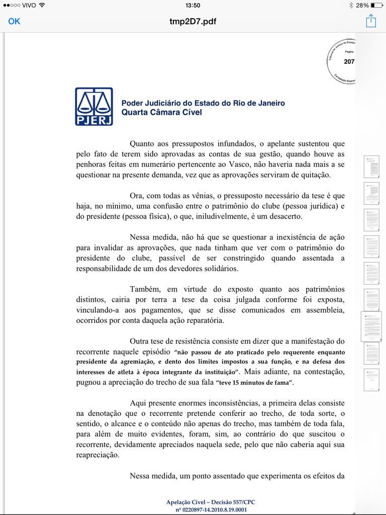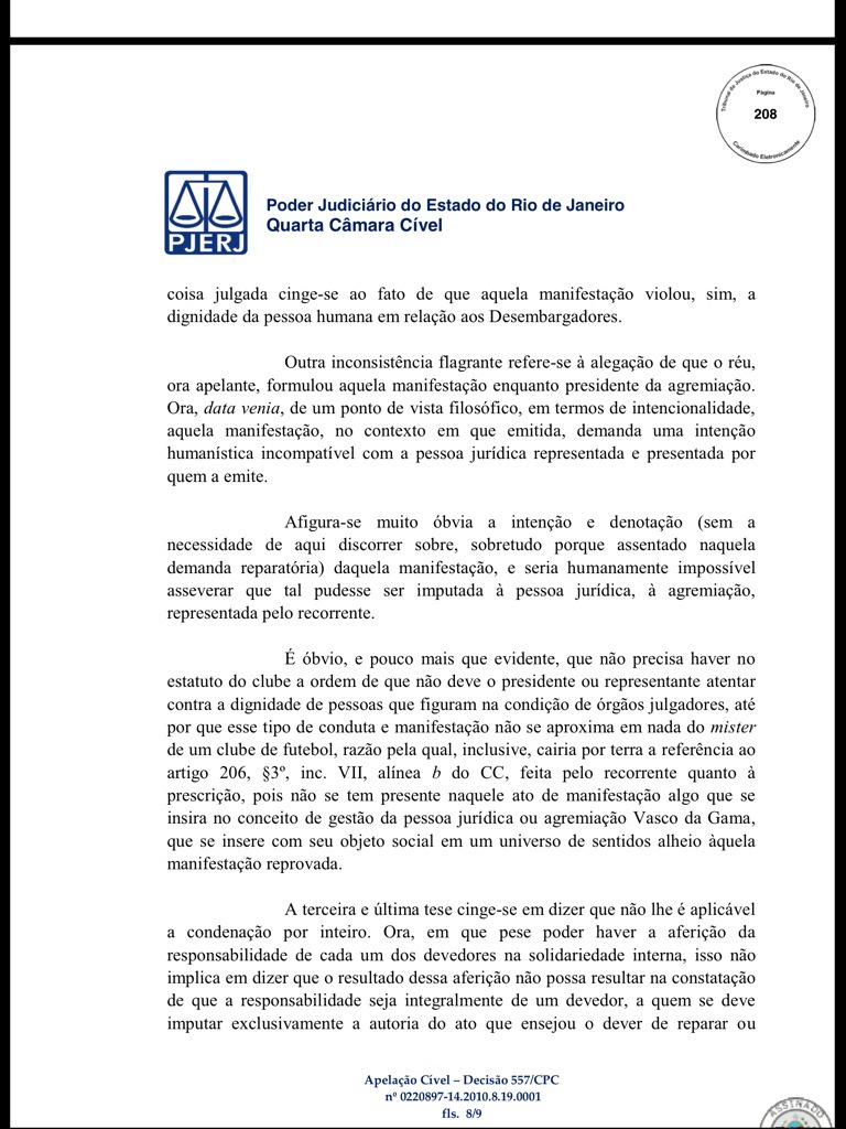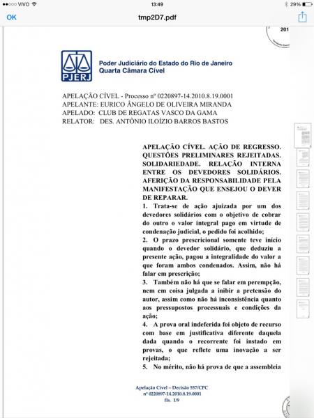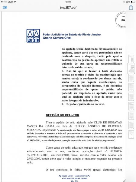 Veja decisão judicial que manteve condenação de Eurico a ressarcir o Vasco em cerca de R$ 3 milhões
