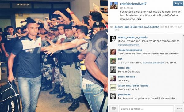 crisfeitalersilva17 Recepção calorosa no Piauí, espero retribuir com um bom Futebol e com a Vitoria do #GiganteDaColina #BoraVascão 💢🙏