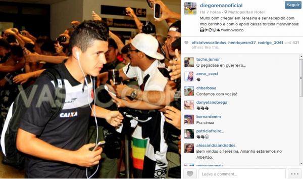 diegorenanoficial Muito bom chegar em Teresina e ser recebido com mto carinho e com o apoio dessa torcida maravilhosa! 🙏✈️⚽️😄👍#vamovasco