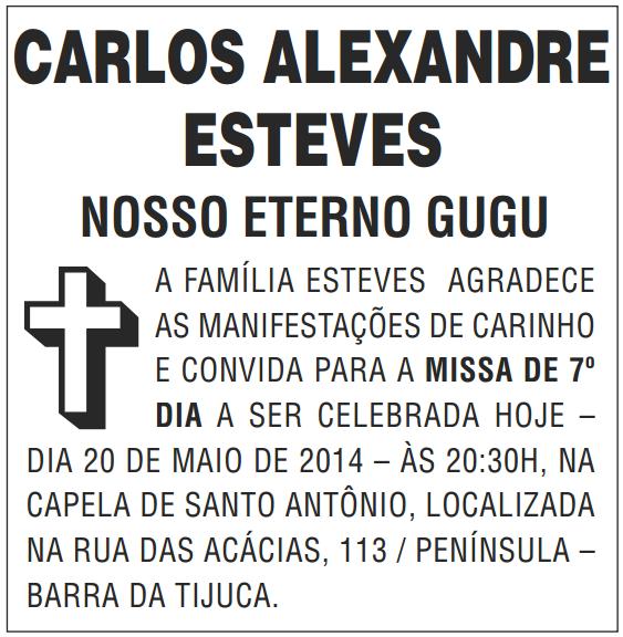 Alexandre Pessoal terá missa de 7º dia nesta 3ª-feira, às 20h30, na Barra da Tijuca