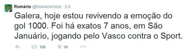 Fonte: Facebook do ex-jogador Romário (texto), Twitter do ex-jogador Romário (imagens)