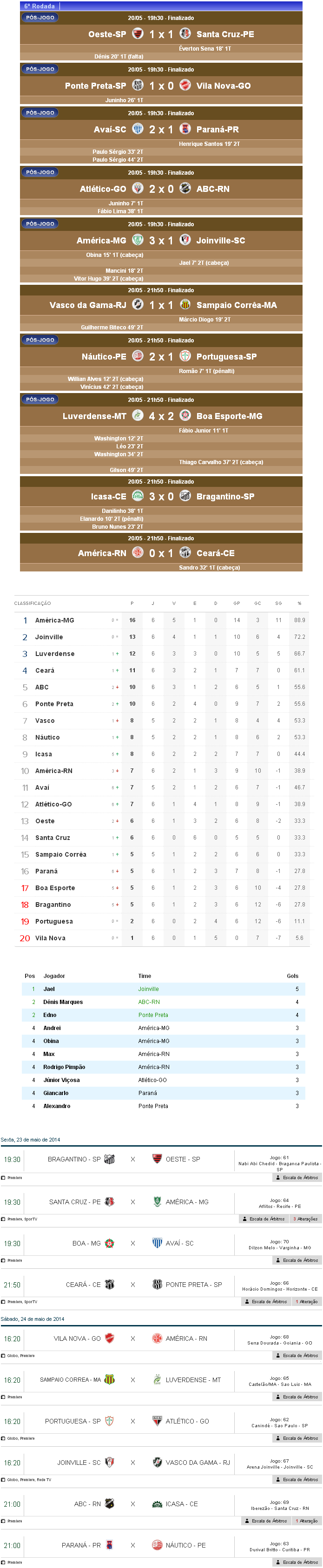 Fonte: NETVASCO (texto), Futebol Interior (resultados, autores dos gols), GloboEsporte.com (classificação), O Globo Online (artilharia), CBF (próximos jogos)