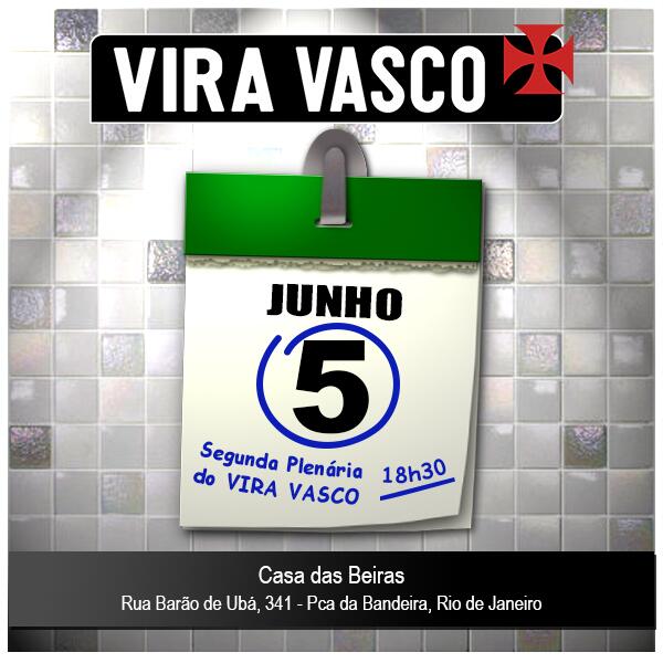 Todos os vascaínos e vascaínas estão convidados para participarem da 2ª Plenária do VIRA VASCO, dia 5/6, às 18h30.