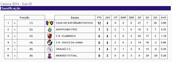 Fonte: NETVASCO (texto), FFSERJ (classificação)