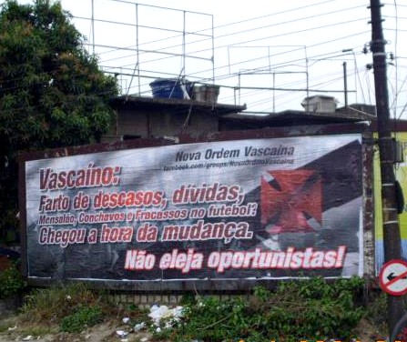 O grupo Nova Ordem Vascaína divulgou nova mensagem em outdoor na Avenida Brasil. Confira os dizeres: