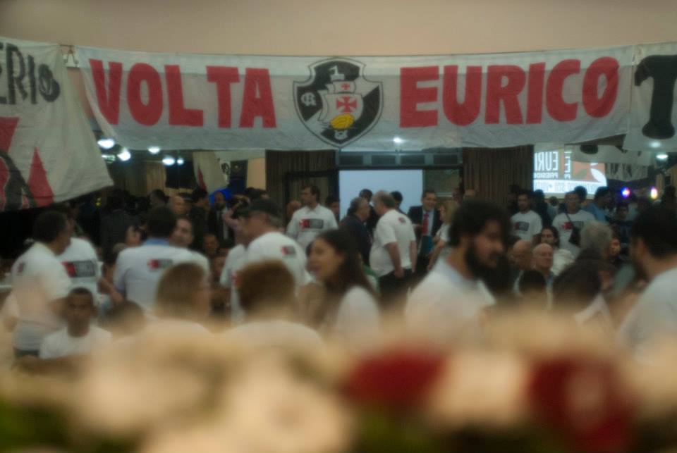 “Quero pedir ajuda de vocês, de todos vocês, para que daqui até a eleição trabalhemos juntos para conversar com os sócios e mostrar importância de voltarmos ao Vasco, com a experiência dos vascaínos tradicionais aliados a jovens com novas ideias”, conclamou Eurico, ao lado de mais 60 grande beneméritos no palco.