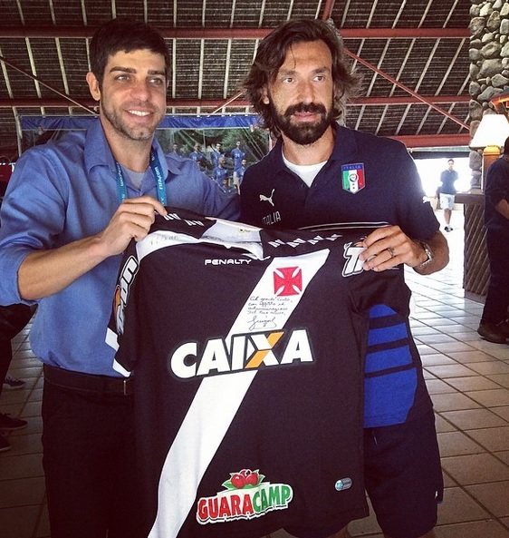 Juninho visita Pirlo e dá uma camisa do Vasco e do Brasil para o italiano