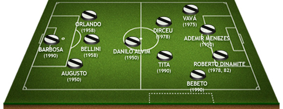 Nota da NETVASCO: Diferentemente do que aparece na imagem, Barbosa disputou a Copa do Mundo de 1950 e, Vavá, a de 1958.