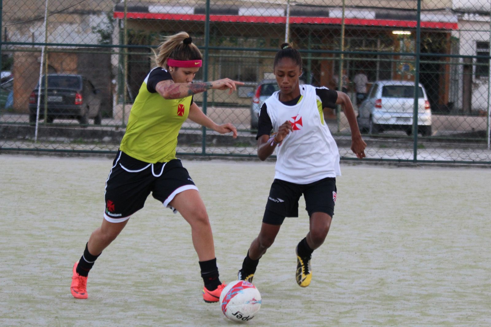 ![]() Gaby (esquerda) durante treinamento em São Januário |