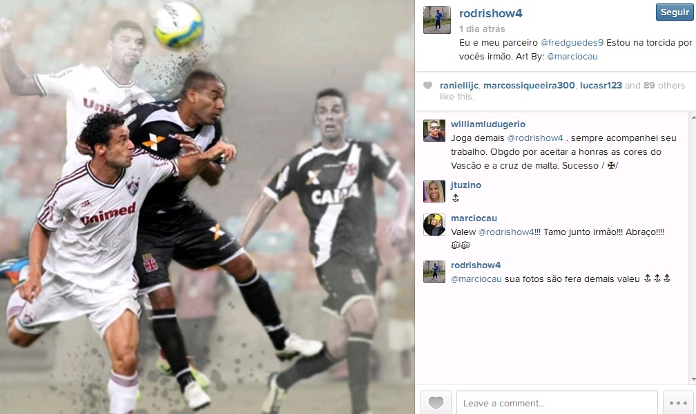 Rodrigo posta foto disputando bola com Fred e escreve que está torcendo pela Seleção