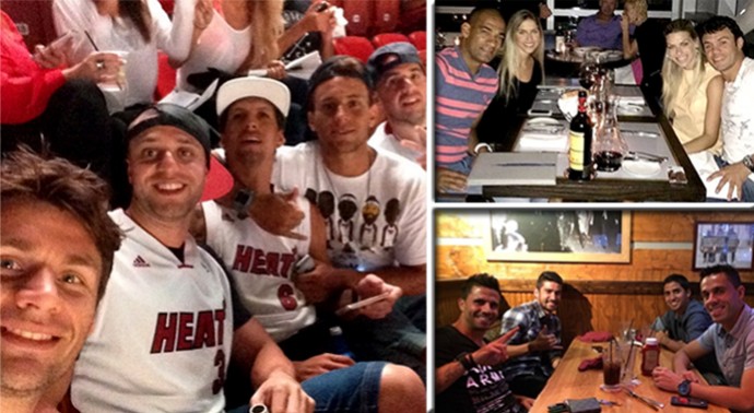 Alguns encontros aconteceram, e o dia dos namorados, 12 de junho, foi a data em que os perfis mais bombaram. O zagueiro Rodrigo, do Vasco, jantou ao lado do futuro companheiro de clube, Kleber Gladiador, e suas respectivas esposas em Miami. Por outro lado, o dia foi de mais esporte para os tricolores Rafael Sobis e Diguinho. Ambos posaram para fotos durante uma das partidas decisivas dos playoffs da NBA envolvendo Miami Heat e San Antonio Spurs, e assistiram à derrota dos donos de casa na semana passada.