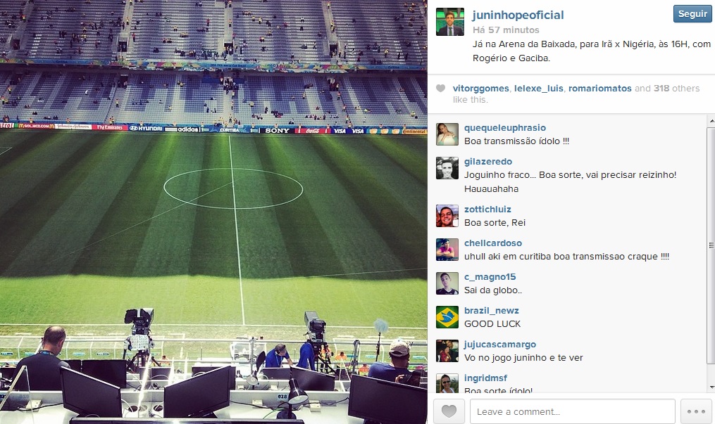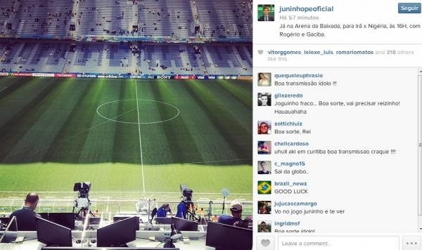 juninhopeoficial Já na Arena da Baixada, para Irã x Nigéria, às 16H, com Rogério e Gaciba.