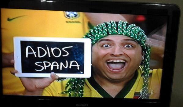 O folclórico torcedor Homem Piruca apareceu novamente durante a Copa do Mundo. No fim do jogo desta quarta-feira (18/06) em que o Chile eliminou a Espanha, no Maracanã, o vascaíno foi focalizado pelas câmeras de TV com mensagem em seu tablet dando adeus à seleção campeã mundial de 2010.