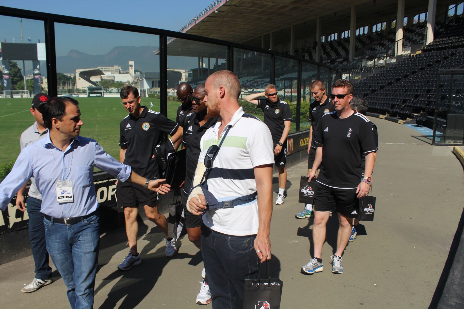 Após visitarem as sedes de Botafogo, Flamengo e Fluminense, os membros da entidade britânica se dirigiram ao Estádio de São Januário, casa do Club de Regatas Vasco da Gama. Os ingleses foram recepcionados por Rodrigo Caetano.O diretor-executivo de futebol foi o guia dos visitantes durante o tour pelo Caldeirão. Caetano contou um pouco da história vascaína e revelou detalhes do funcionamento da estrutura administrativa do departamento de futebol.