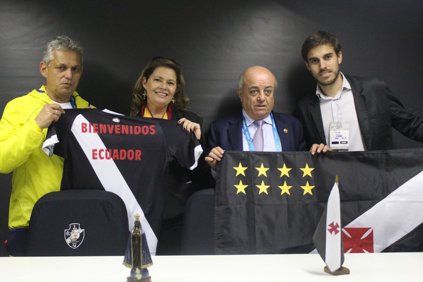 Representaram o cruz-maltino, assim também como o presidente Roberto Dinamite, o Gerente de Marketing Bernardo Pontes e a Coordenadora de Social e Eventos Martha Túlio. A dupla conversou por alguns minutos com o secretário geral da Federação Equatoriana de Futebol, Francisco Acosta Espinosa, e com Reinaldo Rueda, treinador do Equador. O primeiro chegou a citar o triunfo cruz-maltino na Taça Libertadores de 1998.