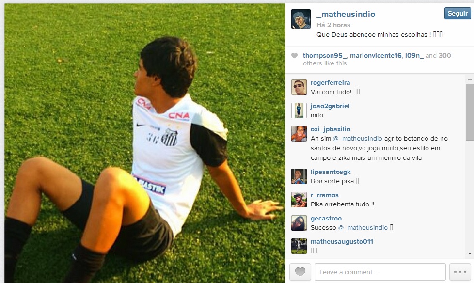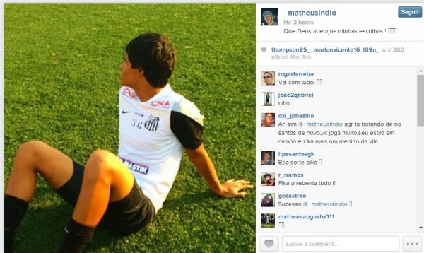 Fonte: NETVASCO (texto), Instagram do jogador Matheus Índio (imagem)