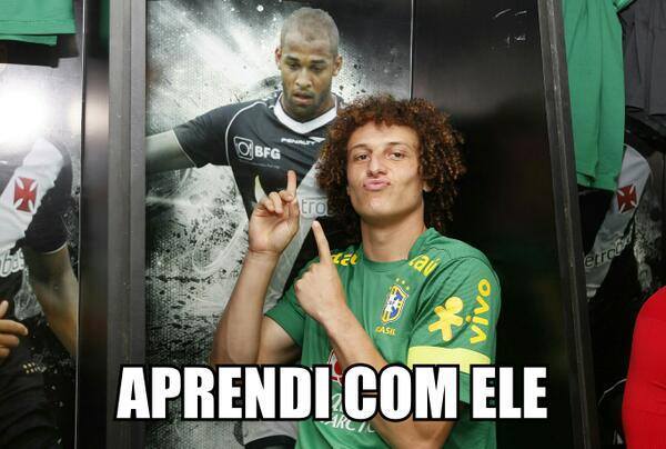 Com o gol de falta do zagueiro da Seleção na vitória sobre a Colômbia (2 a 1), nesta 6ª-feira (04/07), pelas quartas de final da Copa do Mundo, algum torcedor acrescentou, como "legenda" da foto, a frase "Aprendi com ele", numa referência às boas cobranças de falta do jogador vascaíno, atualmente emprestado ao Grêmio.