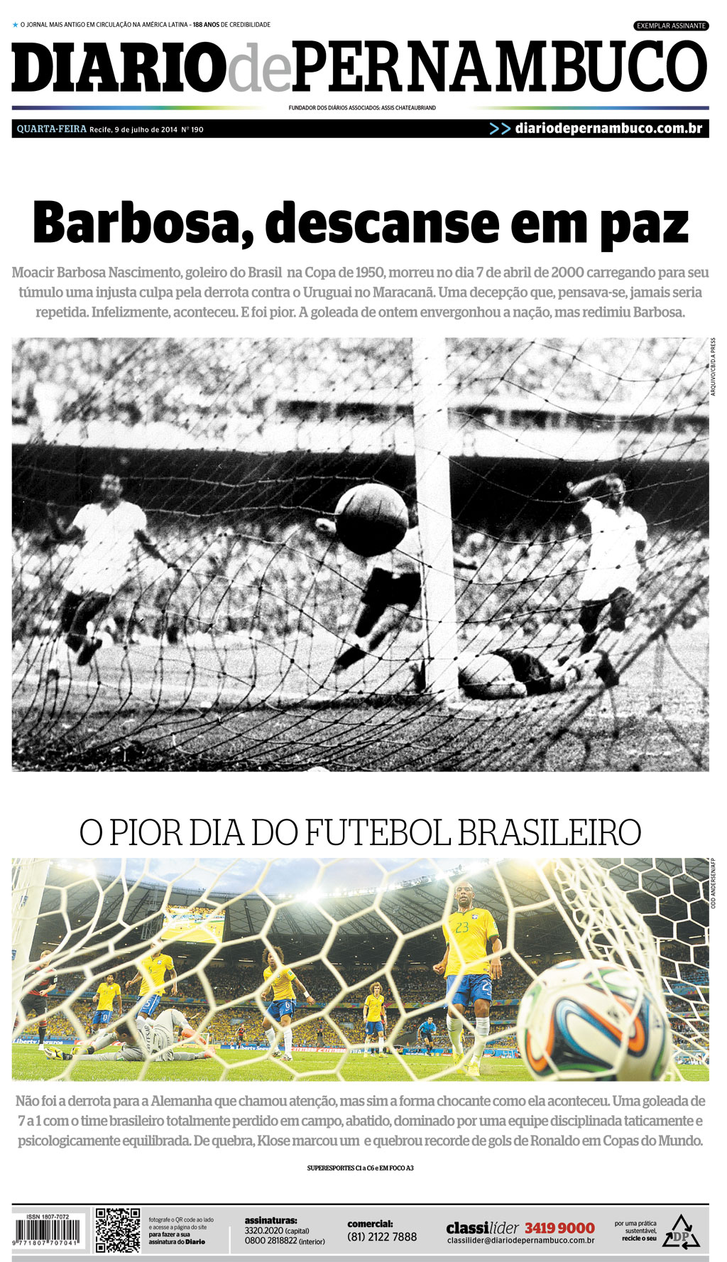 Até 8 de julho de 2014, a derrota do Brasil para o Uruguai por 2 a 1, no Maracanã, em 16 de julho de 1950, na final da Copa do Mundo, era considerada a maior do futebol brasileiro em todos os tempos. Como consequência disso, os jogadores daquela Seleção Brasileira, boa parte deles vascaínos do Expresso da Vitória (5 dos 11 titulares e 8 dos 22 inscritos, além do técnico), foram execrados por décadas. Chegou, porém, a Copa do Mundo de 2014, também em nosso país, e a Seleção Brasileira protagonizou um vexame sem precedentes ao ser goleada por 7 a 1 pela Alemanha na semifinal. Esse jogo, chamado de "Mineirazo", ou "Mineiratzen", superou em muito o "Maracanazo" de 1950 e fez a sociedade e a mídia absolverem a Seleção de 1950 e seu goleiro, o vascaíno Moacyr Barbosa (falecido em 2000 aos 79 anos), como mostram as capas das edições de 9 de julho de 2014 de alguns jornais (veja abaixo).